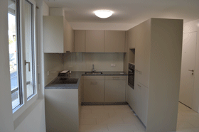 Alle Wohnungen haben modernsten Standart mit Loggia und eigener Waschküche mit WA+TU. Schöne Küchen, helle Platten und in den Schlafräumen